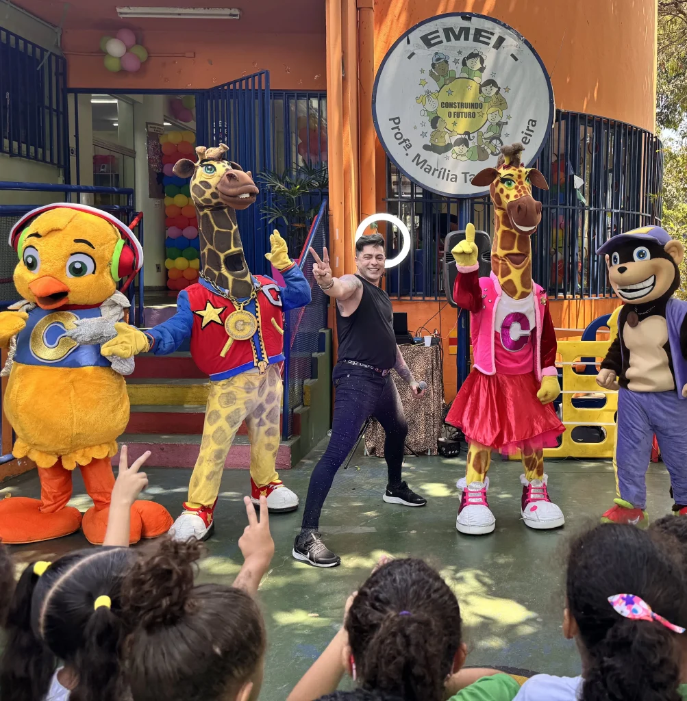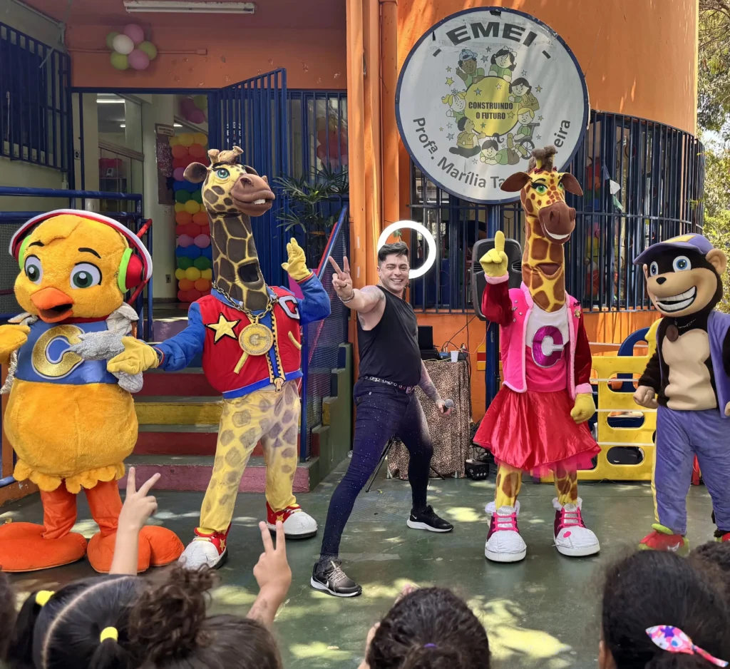 Seja um aniversário ou evento empresarial, nossos shows levam alegria, música e muita interação para crianças e adultos. Com formatos flexíveis, você escolhe o que melhor combina com seu evento.