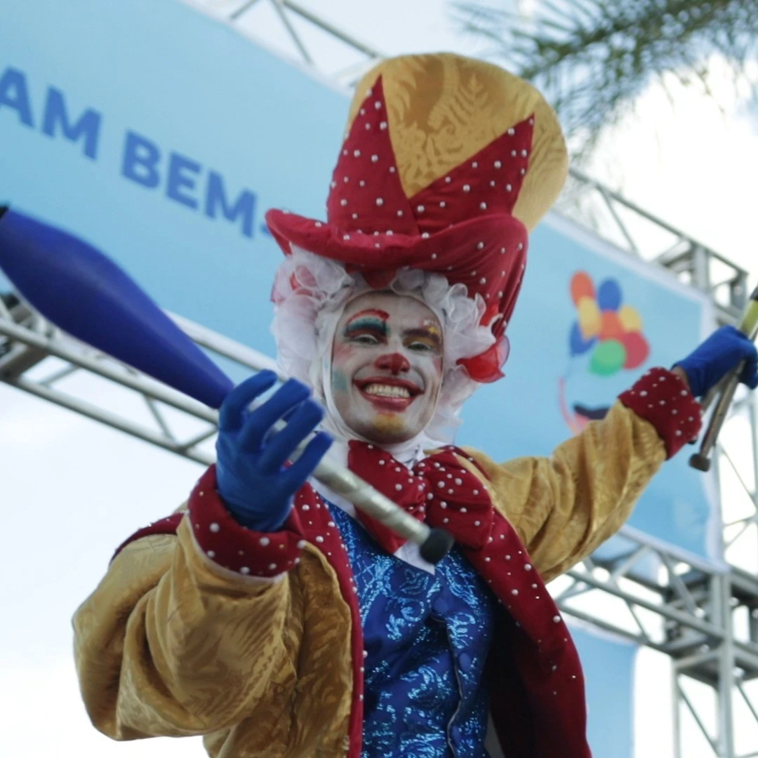 circense, palhaços, mágico, trapezista, perna de pau e equilibristas. Nossos artistas são caracterizados profissionalmente.