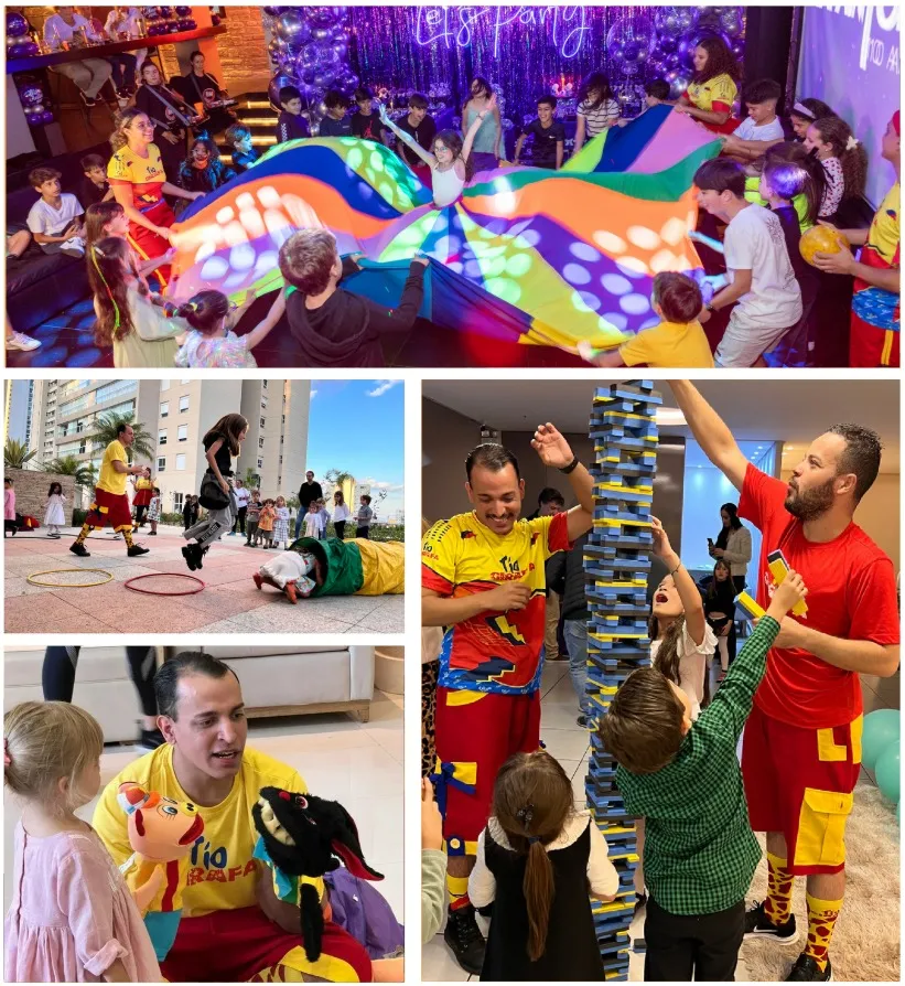 Com criatividade, inclusão e profissionalismo, a equipe fundada por Lúcio de Castro Neto, criador do carismático Tio Girafa, leva alegria a shows temáticos, recreações, oficinas e grandes produções sazonais como Natal, Carnaval e Páscoa.